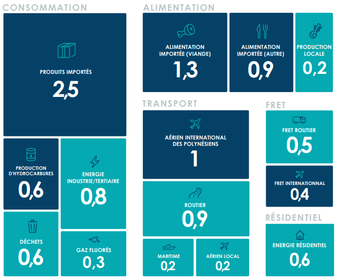 L’empreinte carbone en polynesie française en tonnes de CO2e/hab/an