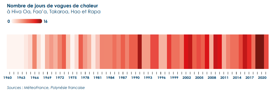 Trente-six ans après la création du GIEC, il n’y a aujourd’hui plus de doutes ni sur la réalité du changement climatique ni sur ses causes. Ces vérités ont été rappelées de la manière la plus nette dans la synthèse du sixième rapport du GIEC, publié en mars 2023. À l’heure de l’emballement climatique, la réduction drastique et rapide des émissions de gaz à effet de serre en Polynésie comme ailleurs est plus que jamais une priorité. Il s’agit également de tout mettre en œuvre pour adapter le territoire et protéger les populations des menaces que cette accélération fait peser sur leurs conditions de vie et leur santé. En Polynésie, la température moyenne a déjà augmenté de 1,1°C en 50 ans et elle connait une augmentation significative des vagues de chaleur à partir des années 80.